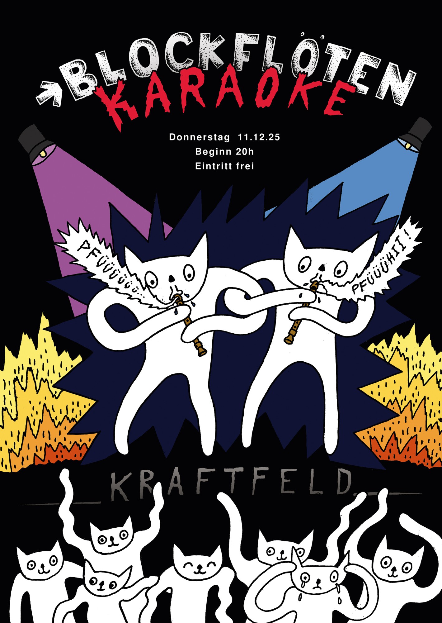 Nach einem äusserst gelungenen Kongress zum Jahresthema Subkontrabassblockflöte in Lidköping, den virtuosen «Semaines de la flûte» in Mouscron und den oberösterreichischen Jugendmeisterschaften steht nun das grosse, lang ersehnte Finale im Blockflötenjahr an: das Blockflötenkaraoke im Kraftfeld. Zum sechsten oder sechzehnten Mal, so genau können wir das nicht sagen. Fest steht nur, dass «der Blockflötismus […] zum Kraftfeld gehört wie das Überblasloch zur Rückseite der Flöte» (Domenico Ferrero in Flutist’s Digest, August 2025). In dem Sinne: Seid gegrüsst, Holzblasinstrumentalist:innen Winterthurs und der Welt.