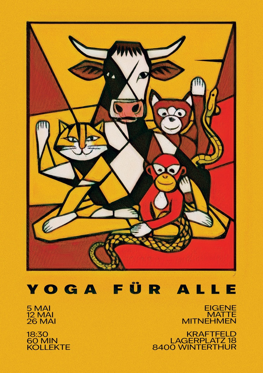 Diesen Monat gibt’s wieder drei Mal Yoga im Kraftfeld. Und es kann wild werden: Wir werden herabschauende Hunde, Kobras und sogar Kamele üben. Aber keine Angst, die Entspannung wird nicht zu kurz kommen.